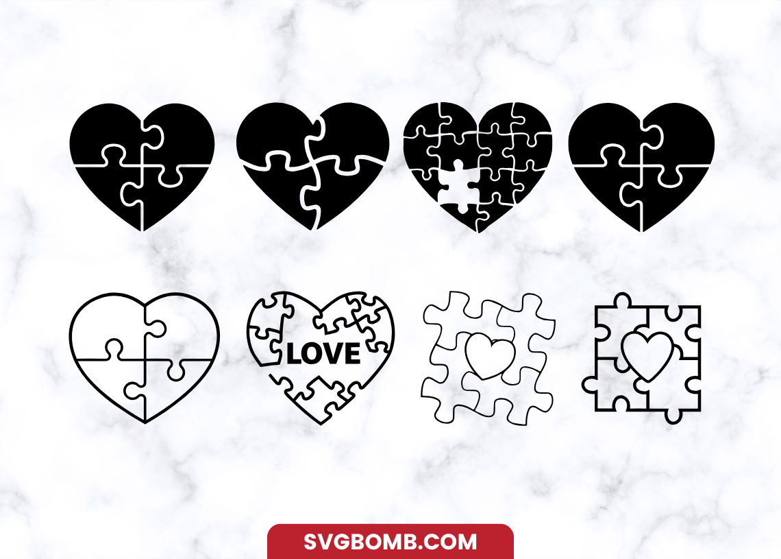 Heart Puzzle, Puzzle Heart Bundle, Heart SVG Bundle, Puzzle Piece Heart, Valentine SVG, Love Puzzle Design, Autism Awareness Heart, Heart Cut File, Silhouette Cut File, Heart Puzzle Vector, Love Theme SVG, Puzzle Pieces SVG, Romantic Design SVG